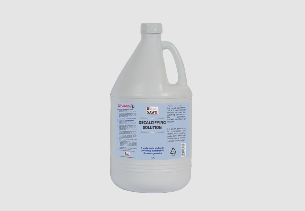 SAWO decalcifying solution has just the right formula to dilute the calcium deposits that causes clogs in the steam tubes that can damage your steam generators. It is a ready-mixed compound that has the correct amount of chemicals that won’t harm the metals of the steam generator tank.